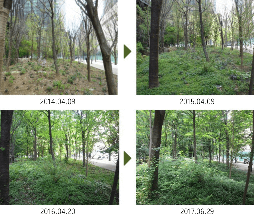 その名も「大手町の森」。希少種を含む約300種もの植物が野鳥や昆虫たちを呼び、都心に新たな生態系を宿す豊かな自然環境です。周辺エリアで働く人々に憩いとやすらぎを提供し、都市公園コンクールで国土交通大臣賞(企画・独創部門)を受賞するなど、都市緑化のモデルとして高く評価されています。