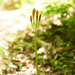 どうぞこちらへ。オレンジの花を咲かせているのはオオキツネノカミソリです。ヒガンバナの仲間で東京都の絶滅危惧種に指定されています。