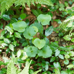 足元の草はクサイチゴといいます。春には食べられる実がなるんですよ。ほかにもミツバアケビなど、食用できる植物が意外と多いんです。