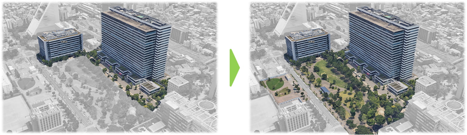緑豊かなこの場所は、働く人々にはクリエイティブな発想が生まれる希少な都心のオフィス空間として、住まう人々には緑に囲まれたゆとりある空間として、訪れる人々にとっては家族や友人とくつろげる空間として、様々な価値を提供しています。