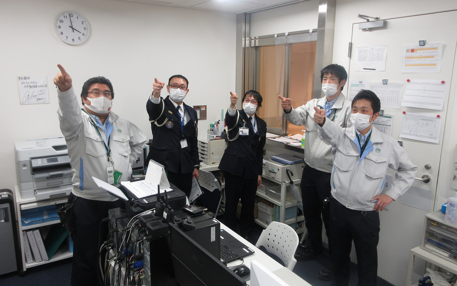 表彰された事例においても、信頼関係にもとづく連携が発揮されました。ビルに隣接し、多くの方々が往来し混雑する新宿駅西口地下通路で急病人が発生。ビル警備隊を中心に各スタッフが連携し人流を整理し、一般の方の協力も得ながらAEDなどを用いて心肺蘇生にあたりました。急病人は一命をとりとめ、本件の対応は消防総監感謝状の授与を受けました。日々の訓練や連携が緊急時に発揮された事例となりました。
