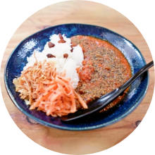 「化学調味料、小麦粉、保存料、動物性乳製品、添加物は不使用。また可能な限り有機無農薬、特別栽培といった素材、食材を使用しています。素材の90%以上が有機無農薬の人参・トマトを使ったオリジナルのルーです。ここまで有機無農薬の素材にこだわったカレーは、都内にもあまりないと思います」と語ります。食物アレルギーにもしっかり対応。カレーが好きな方、スパイスが好きな方、健康が気になる方、いろいろな方に楽しんでもらえるよう、辛さもありながら食べやすいことを第一に考えています。