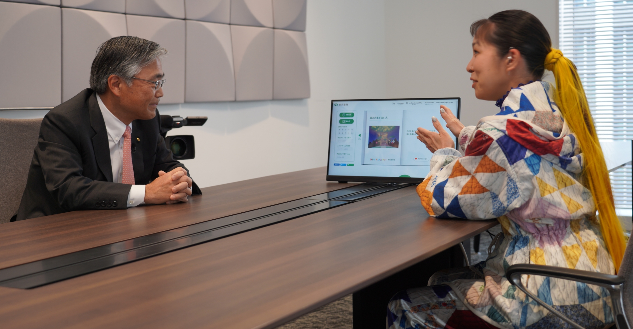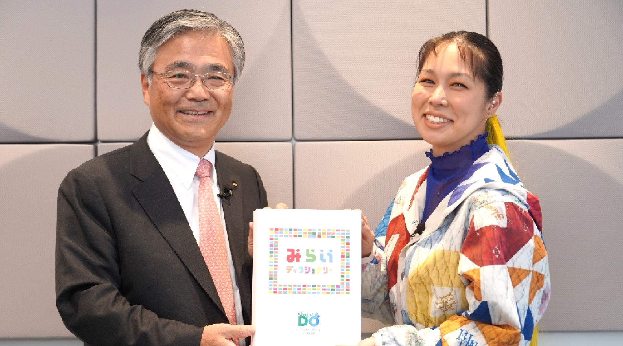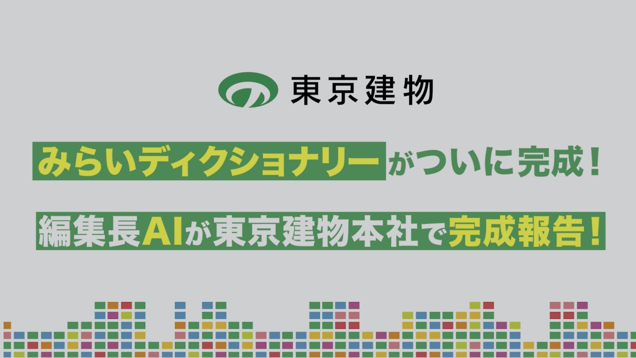 東京建物の「サステナブルなまちづくり」に向けた活動と発信の強化を目的とした「DO for Sustainability. with 東京建物」プロジェクトの始動を機に、昨年9月から東京建物のサステナビリティパートナーに就任していただいたAIさん。その活動の一環として編集長として携わった『みらいディクショナリー』が完成し、東京建物本社にて代表取締役社長執行役員の野村均に完成をご報告いただきました。