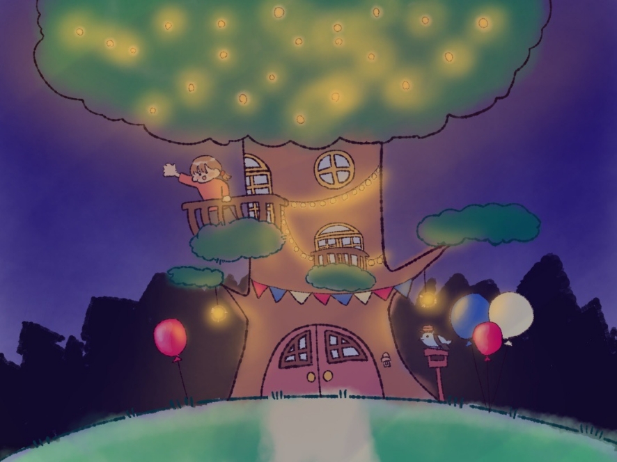自然を壊さず、一緒の世界で共生する家を想像して描きました。