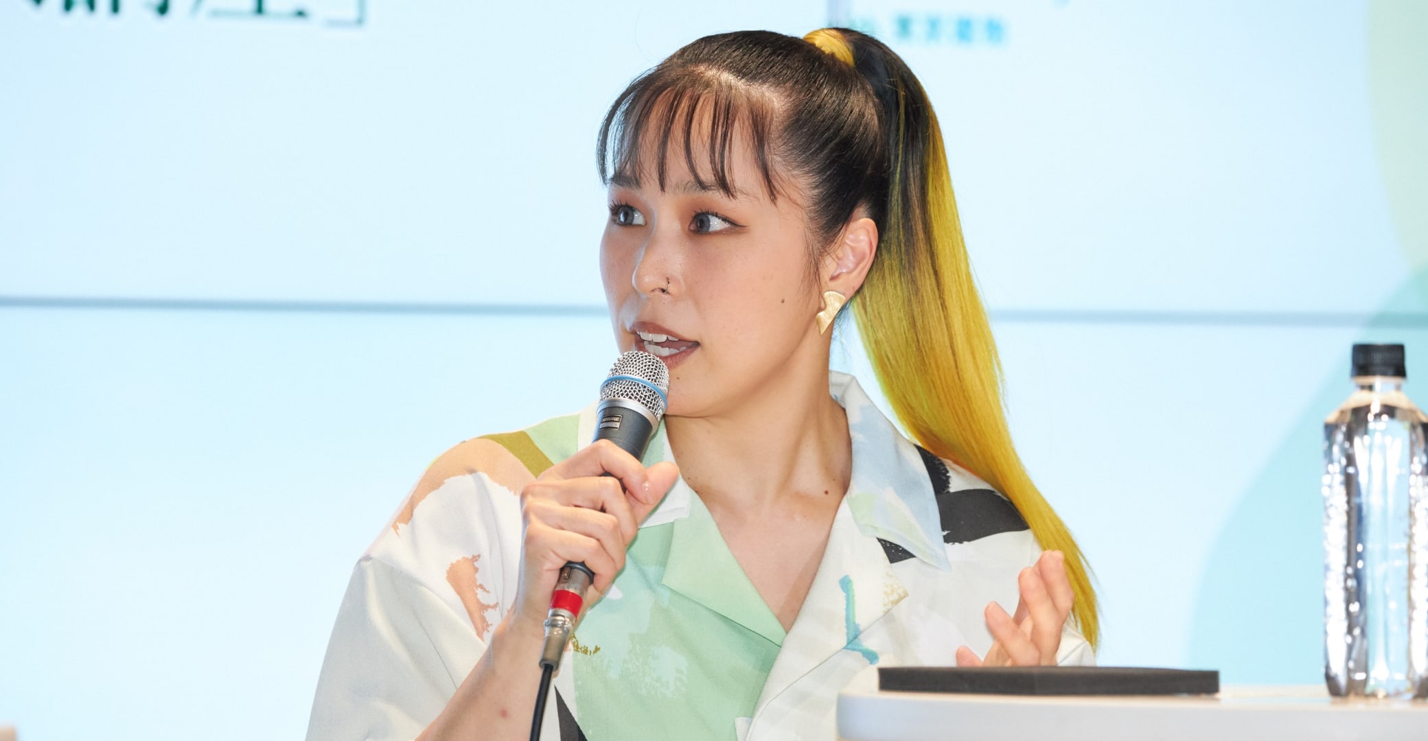 2022年9月に東京建物サステナビリティパートナーに就任したAIさん。トークセッション冒頭に、AIさんのサステナビリティパートナーとしての活動についてお話しいただきました。また、東京建物の企業CM用に書き下ろした曲「BE WITH YOU」を一節だけでも聞かせてほしい、というリクエストを快く引き受けていただき、歌声を披露してくださいました。