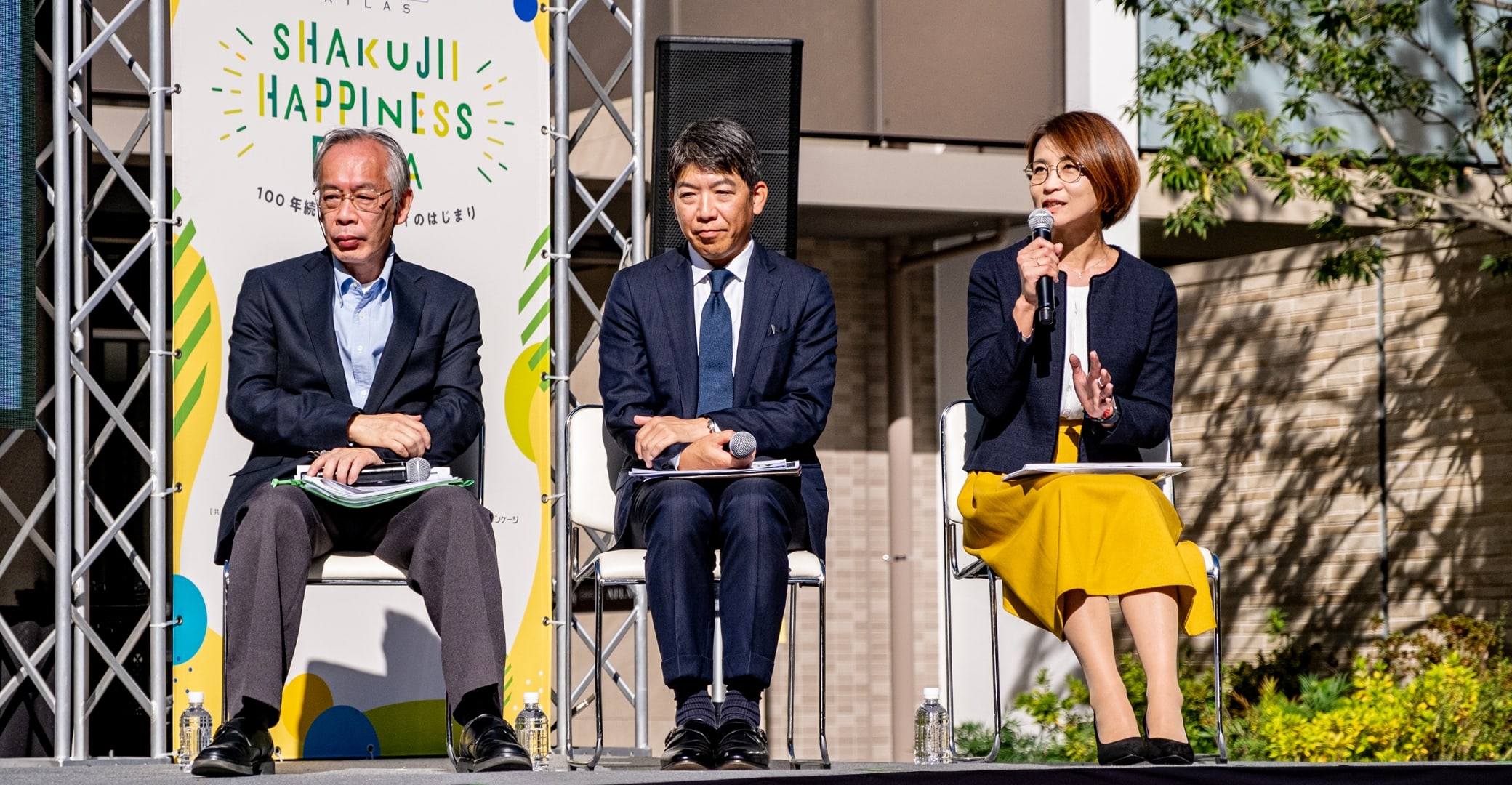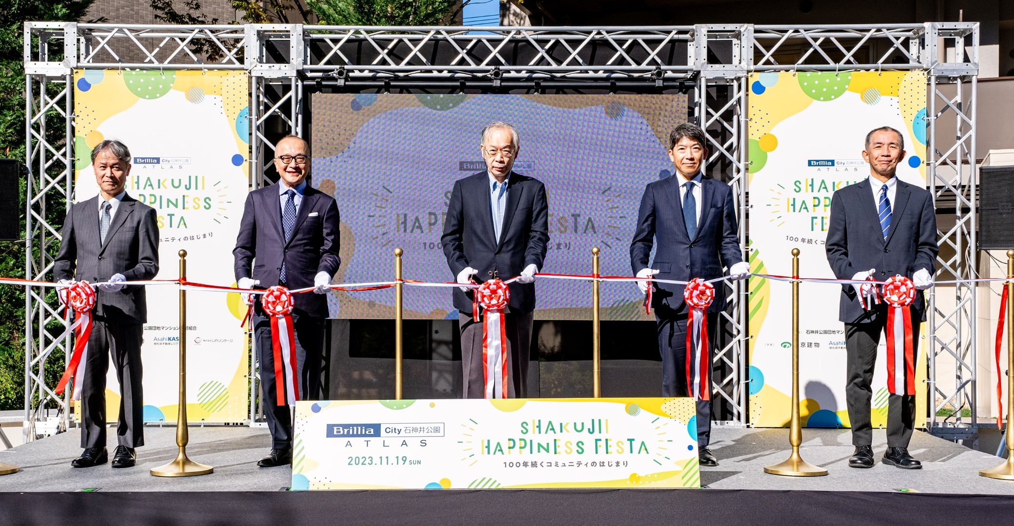 そして2023年11月19日、石神井公園団地に住まわれていた方、建替え後新たに住まわれる方、さらには地域の皆様との繋がりを創出することを目的に、まちびらきイベント「SHAKUJII HAPPINESS FESTA」(シャクジイ ハピネス フェスタ)を「Brillia City 石神井公園 ATLAS」敷地内にて開催しました。評論家の山田五郎氏などが登壇したオープニングセレモニー・トークイベントのほか、旧団地サークルによるステージパフォーマンスの開催や周辺地域のショップによるマルシェの出店など、旧団地コミュニティの継承だけでなく地域に開らかれたコミュニティの醸成を図りました。今回は、イベント当日の様子をご紹介します。