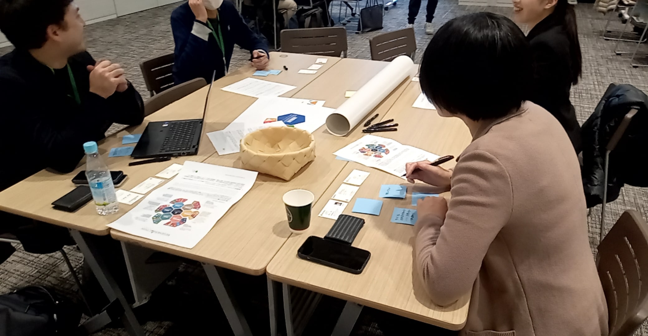 このセッションでは学生、研究者、地元ワーカー、海外からのゲストなど多様なバックボーンを持つ参加者が5つのテーブルに集い、リジェネレーションの思考を学ぶプログラムを受講した東京建物の社員がファシリテーターを務めました。第1のフェーズではYNKの課題を抽出。第2のフェーズでは課題に対するビジョンと具体的なアクションについて意見を交わしました。