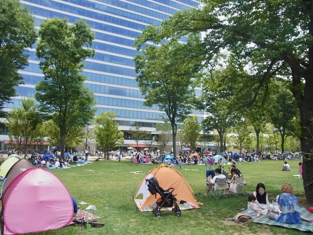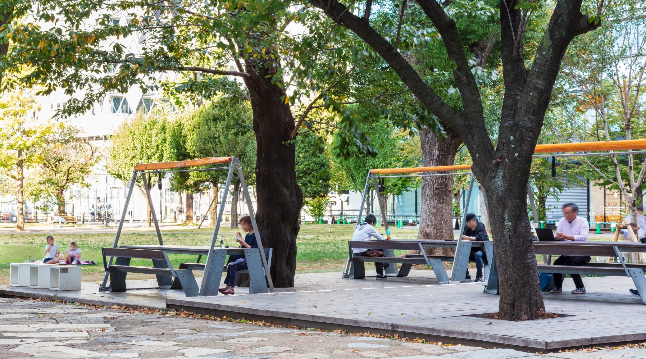公園では子連れ家族がピクニックを楽しみ、ベビーカーとオフィスワーカーが行き交うこのまちならではのボーダレスな空間は新鮮なアイデアの源にもなるはずです。