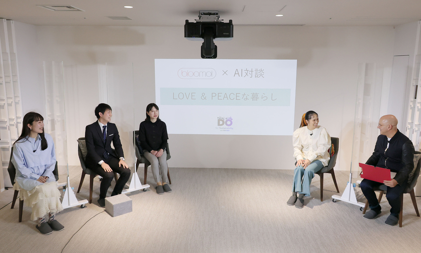 AIさんは2022年9月、東京建物の「サステナブルなまちづくり」に向けた活動と発信の強化を目的とした「DO for Sustainability. with 東京建物」プロジェクトの始動を機に、同社のサステナビリティパートナーに就任。そして昨年末の12月20日に開催されたイベント「LOVE & PEACEな暮らし」に登壇した。これは、「DO for Sustainability. with 東京建物」の活動の一つとして行われた、東京建物のマンションブランド・Brilliaから生まれた住まいと暮らしの共創プロジェクト「bloomoi(ブルーモワ)」との対談イベントである。