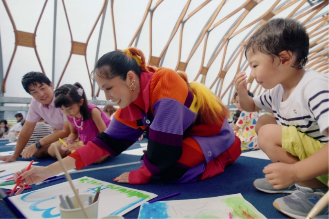 半日に渡る撮影の中で、AIさんには、子どもたちと一緒に楽しく絵を描いたり、『BE WITH YOU』をみんなと歌ったりして、現場を明るく引っ張っていただきました。