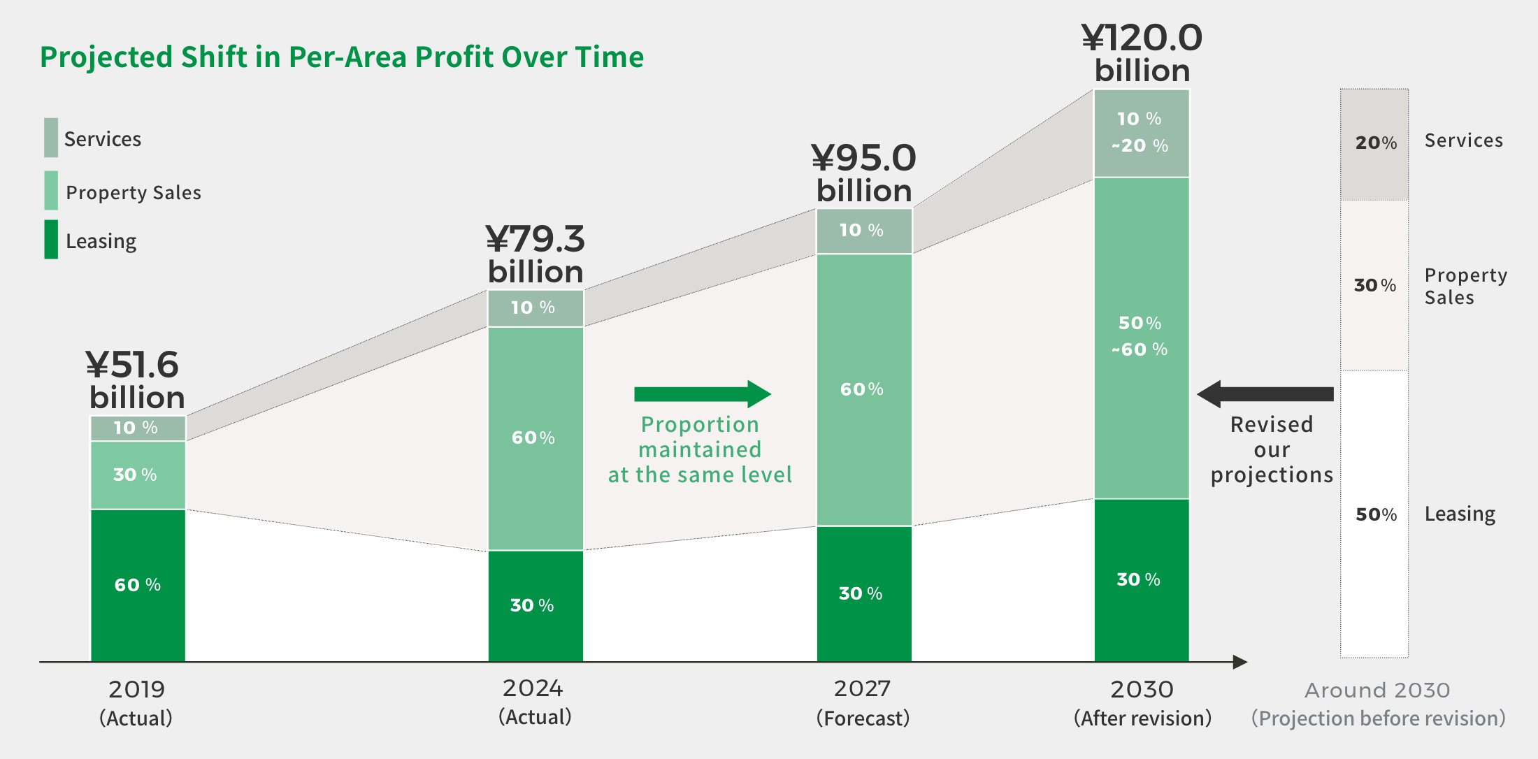 In 2020, the Tokyo Tatemono Group announced its long-term vision, "Becoming a Next-Generation Developer," which is focused on the year around 2030. The group has been working to become a "good company" for all stakeholders by leveraging its businesses to solve social issues and achieve higher levels of growth as a company.
