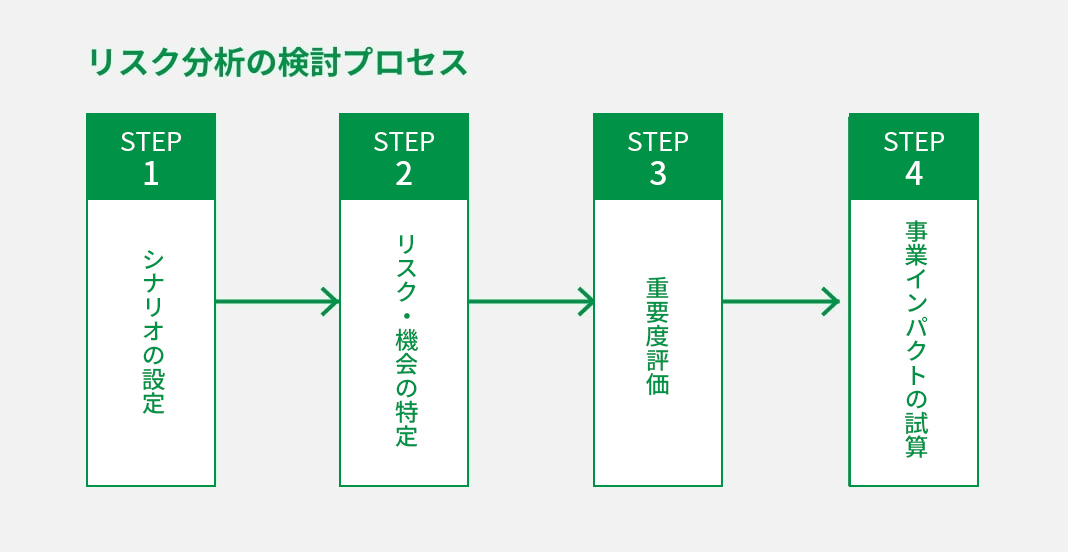 当社は、気候変動に関するリスクおよび機会の特定、重要度の評価、ならびに当社グループの事業利益に与える影響について、設定したシナリオを用いてシナリオ分析を行っています。